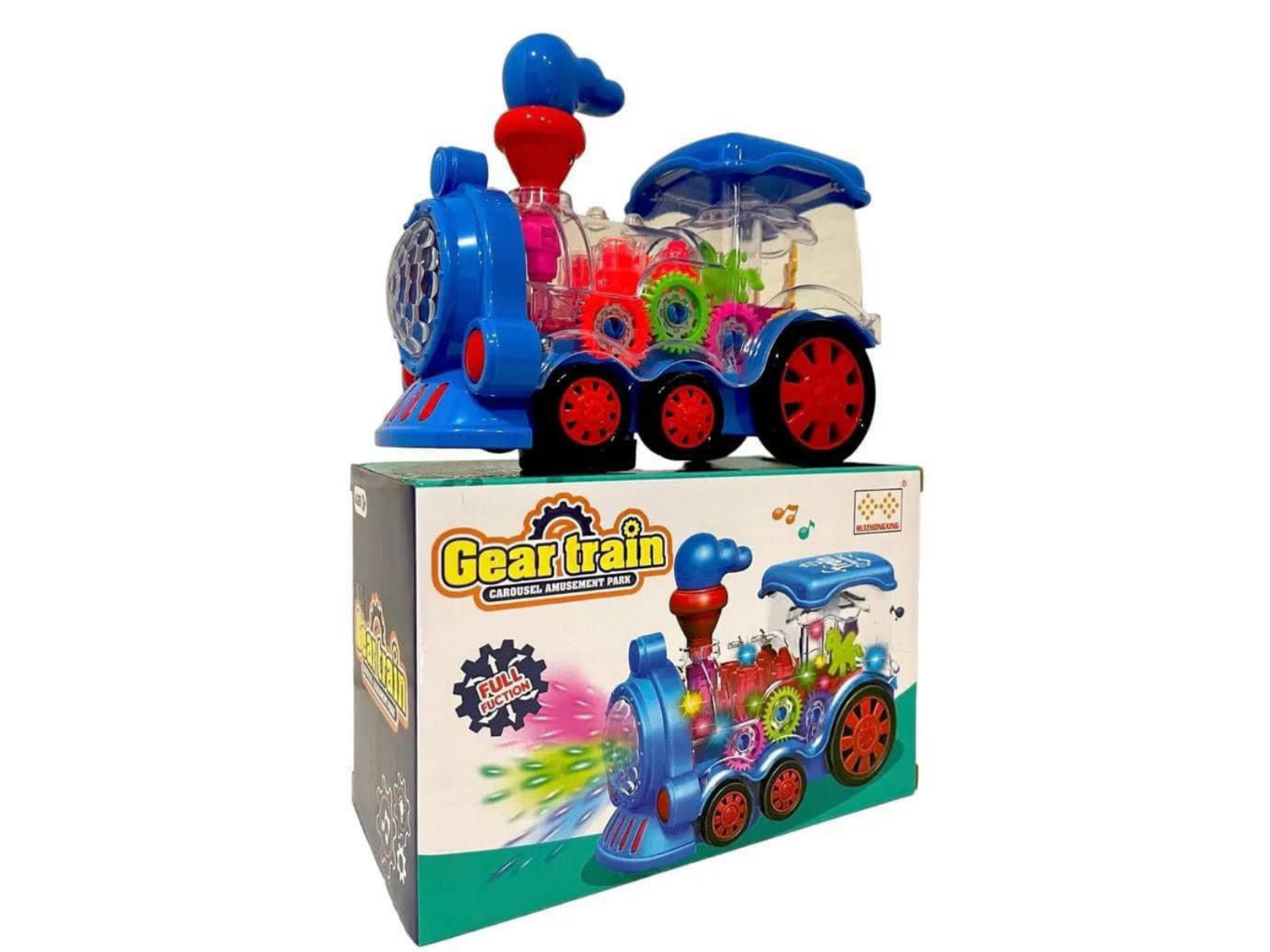 Jack Royal Train Transparent Bump & Go – Jouet Musical avec Engrenages Colorés, Lumières 3D, et Sons, Idéal pour Enfants de 2 à 5 Ans.
